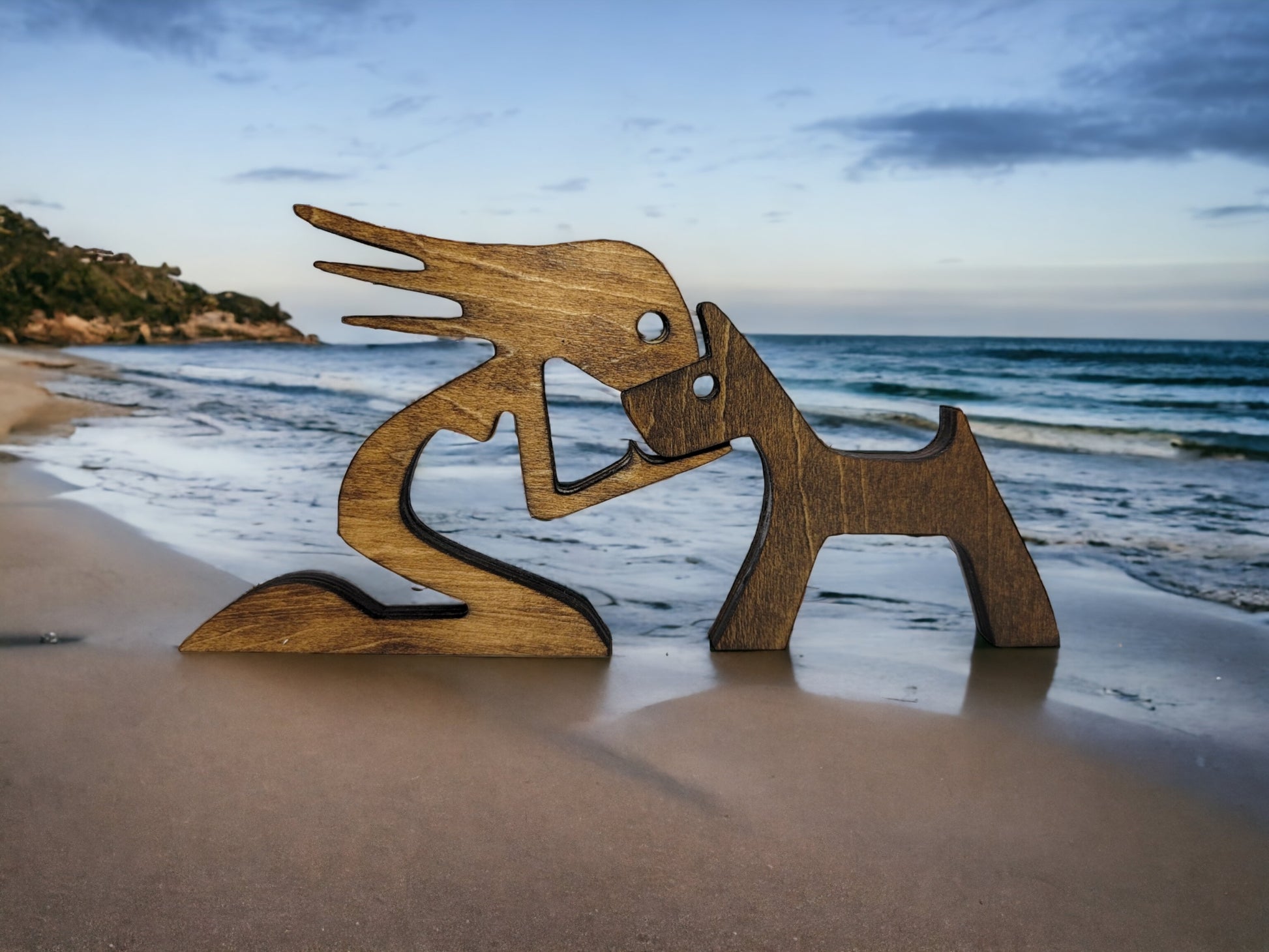 Celebrate the love a woman has for her dog with this beautiful handcrafted wooden statue.