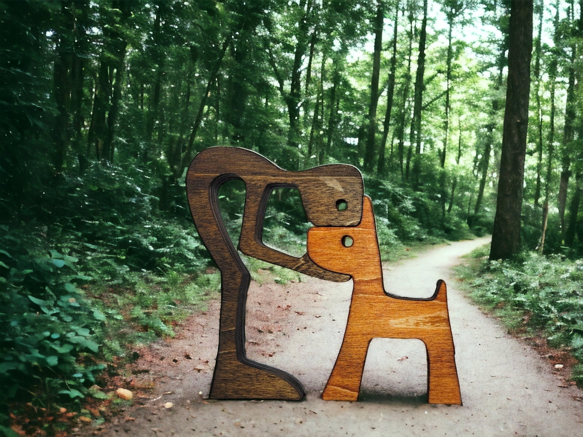 Celebrate the love a man has for his dog with this beautiful handcrafted wooden statue.